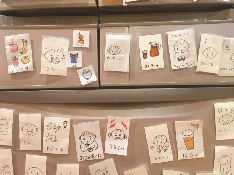 「3歳ごろになって指差しするようになると、絵カードや文字盤を使ってやりとりできるようになって。息子が何を必要としているかがわかると、コミュニケーションがだいぶラクになりました。たとえば冷蔵庫にジュースを描いたカードを貼って、息子が指を差したら実物を渡したり。そんなやりとりを繰り返すと、息子も“欲しいものが手に入る”とわかってきて。自然にコミュニケーションも増えるようになりました」