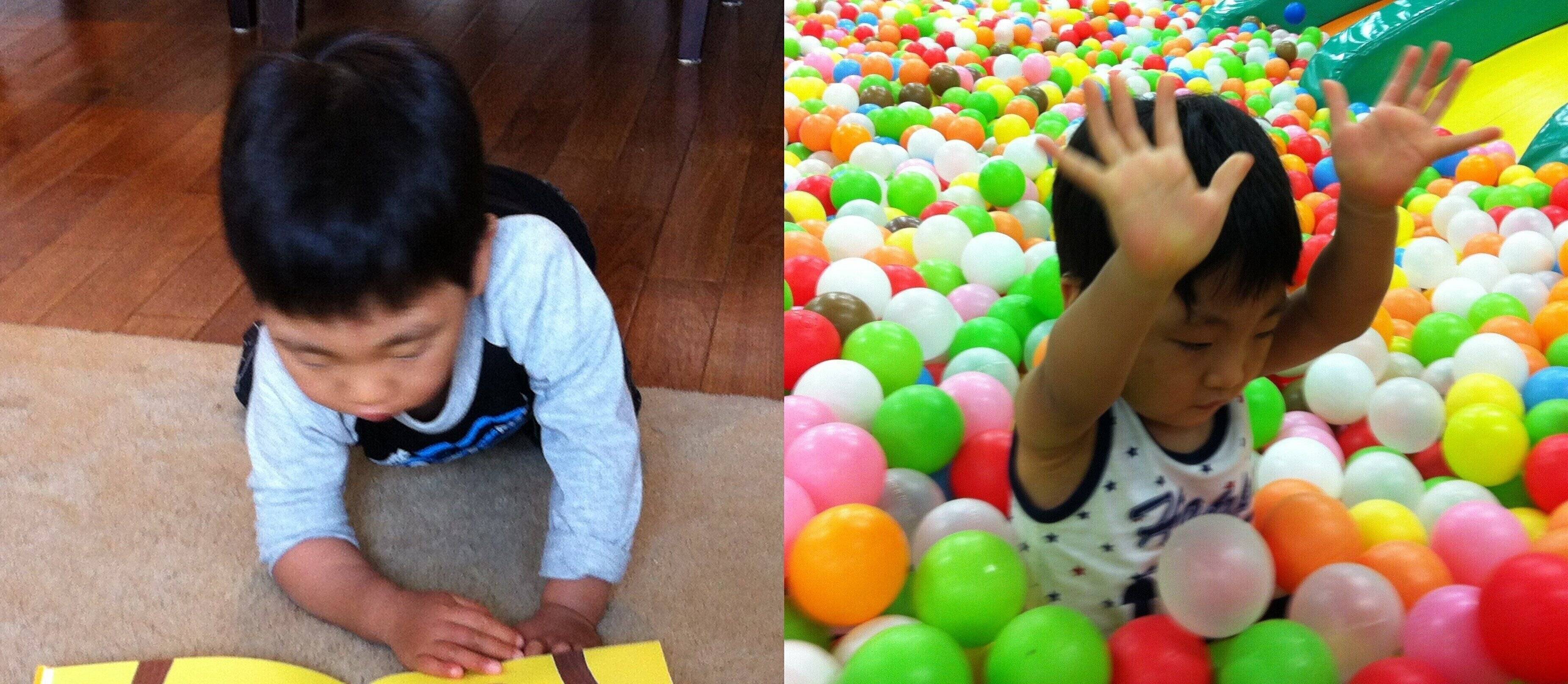 Tくんが2歳代のころ。「当時から絵本が好きで読み聞かせをしたり、リハビリではボールプールで遊んでいました」(美華さん)