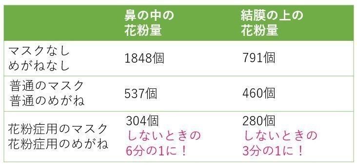 めがねで目に入る花粉量をかなり防げます