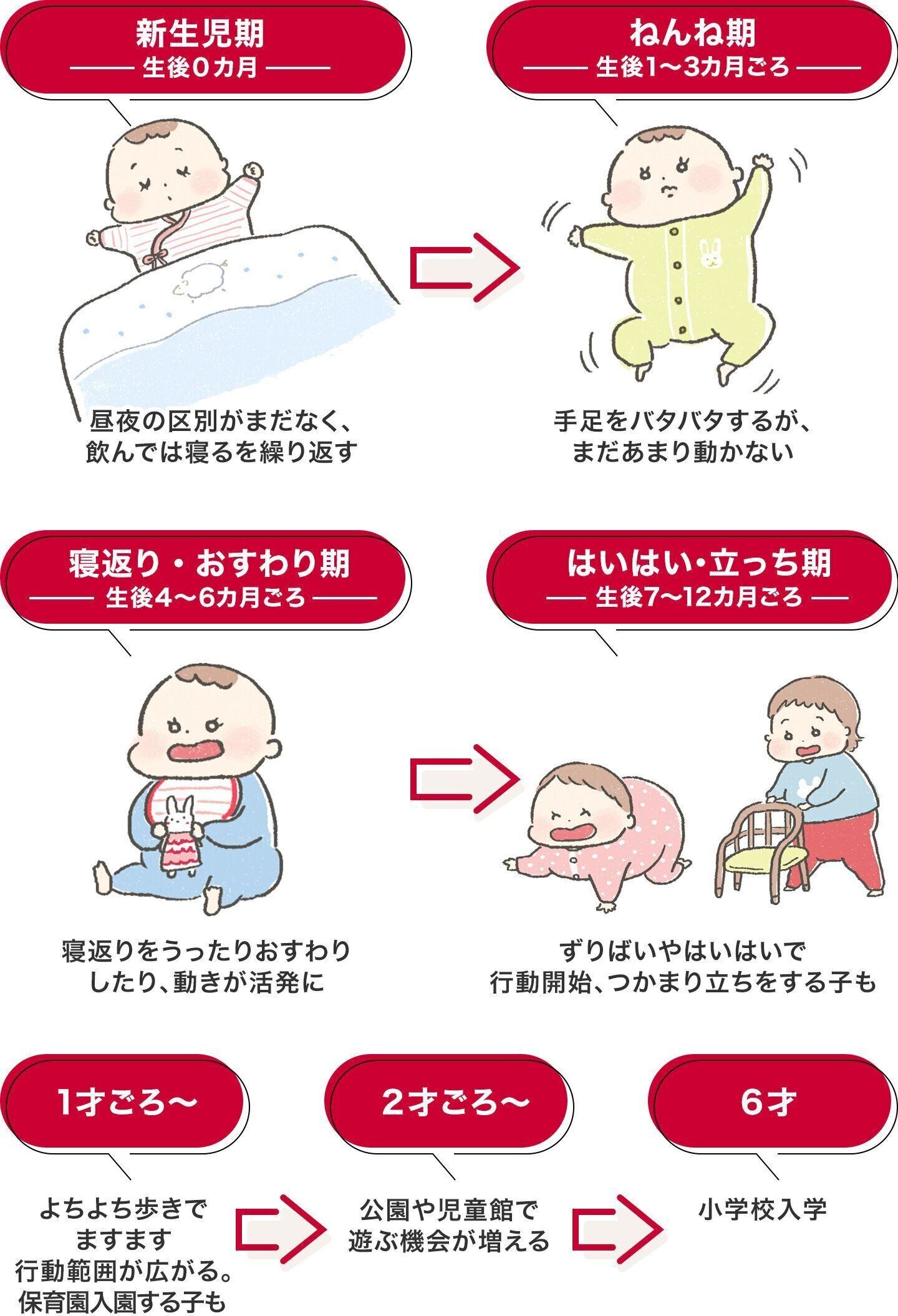 子育て層の住まい探しの条件は、大人だけの世帯と大きく変わります。ポイントは、赤ちゃんの成長やこれからの生活の変化を見越しておくこと! まずは赤ちゃんの発達や少し先までのライフイベントをイメージしてみましょう。