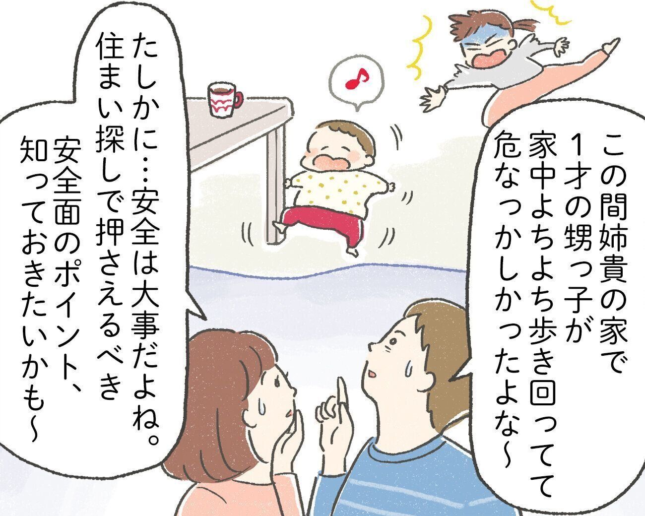 赤ちゃんはハイハイやアンヨでどこへでも行くので、ケガをしないように段差が少ないほうが安心。成長するに従い動きが活発になり、目が離せなくなるので、安全性は最優先で考えておきましょう。