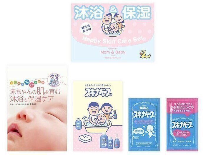沐浴剤「スキナベーブ」と「スキナベーブ ベビーミルキーローション」のサンプルセットをプレゼント。セットのほかにも、スキナベーブシリーズパンフレット、看護師協力はじめての沐浴&保湿小冊子が入っている、スペシャルBOXになっています。ぜひ、出産前にママやパパのお肌でお試しください。