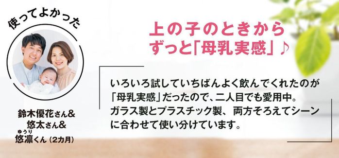 おっぱいトラブルがあるときやママが外出するときなど、直接母乳をあげられないときに役立つのが哺乳びん。多くのママから支持されてきた「母乳実感®」は、赤ちゃんが自然に飲めて、おっぱいとの併用もスムーズです。