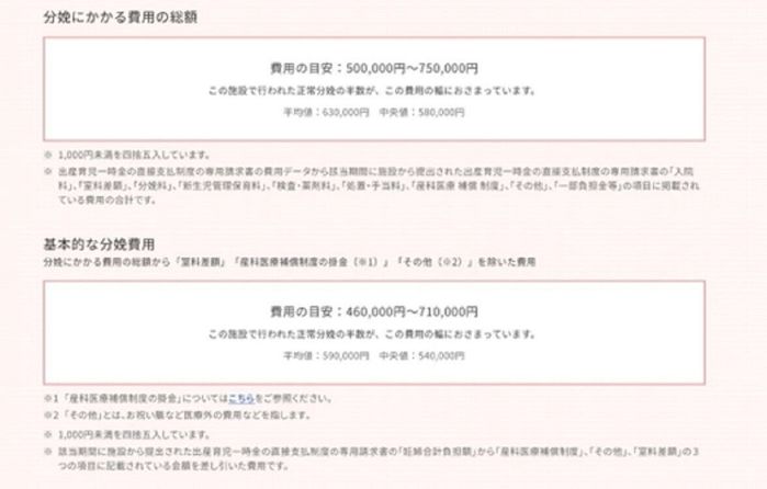 出産したい施設ではどのくらい費用がかかるのかが具体的にわかります。