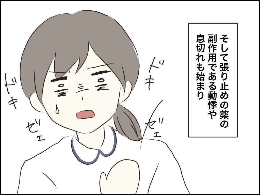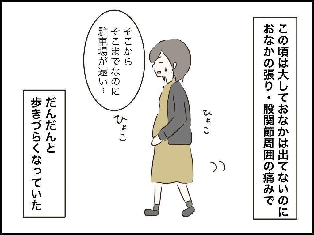 おなかも大きくなりおなかの張りや股関節・骨盤の痛みもあり歩くことが苦痛になっているところに、薬の副作用である動悸・息切れが追加された私。