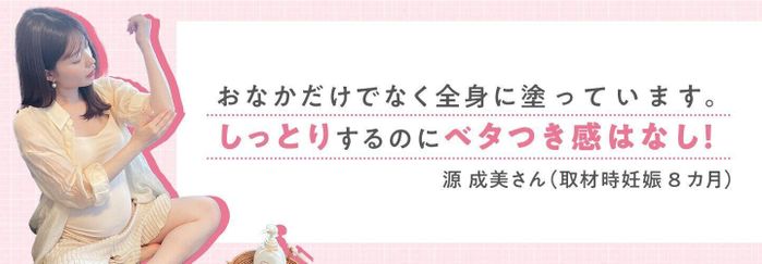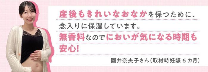人気の理由① 「妊娠ボディに特化した美容液と美容オイルたっぷりのオイルリッチクリームだからきれいなおなかをキープできた!」