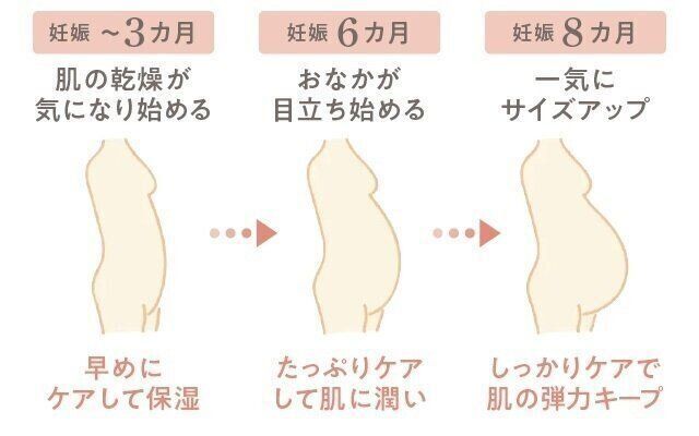 女性は妊娠してホルモンバランスが崩れると、肌にかゆみや乾燥を感じることが増えてきます。妊娠段階が進むと、お腹が大きくなり皮膚も伸びていくのですが、お手入れをしていない皮膚はお腹の伸びについていけなくなり、ひび割れのように目立ってきてしまいます。それが「妊娠線」と言われるものです。