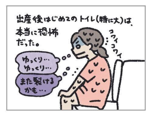 汚い話で申し訳ないのですが、出産後初めてのトイレ(特に大)は、本当に恐怖でした。そんなことあるのか分かりませんが、また裂けてしまったら怖い!と思い、すごくゆっくり用を足すよう、細心の注意を払いました。