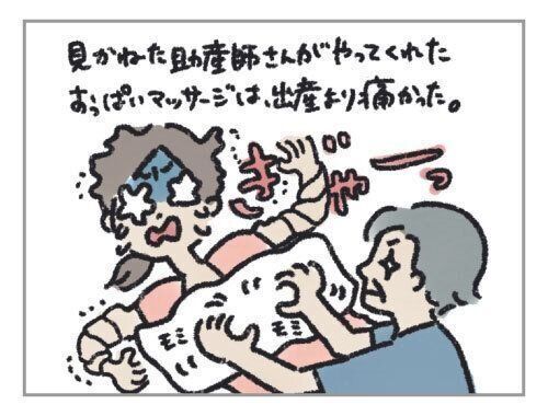 それでもなかなか母乳が出ないのを見かねて、ベテラン助産師さんが、おっぱいマッサージをしてくれました。ちょっと恥ずかしかったですが、藁にもすがる思いです。それが・・・すっっっっっごい力で、すっっっっっっごい痛かった!!!ベッドの上で身をよじって、思わず叫びました。出産より痛かったと思います。。
