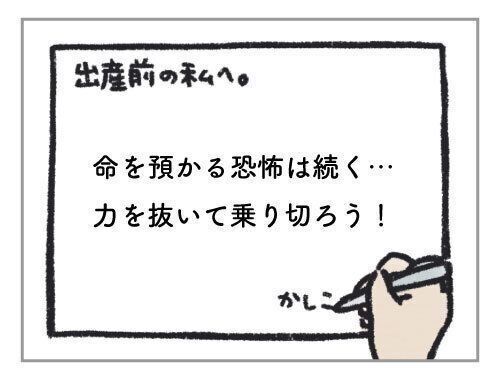出産前の私に伝えたいです。「命を預かる恐怖は続く・・・。力を抜いて乗り切ろう!」