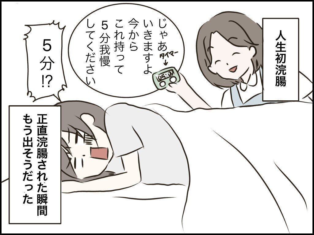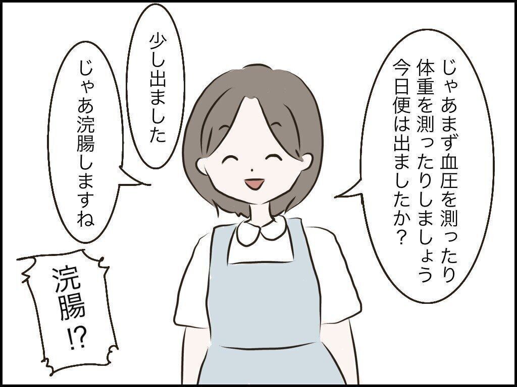 部屋で荷解きをする間もなく先生の診察があり、その後看護師さんのバイタル測定を終えると何と初の浣腸をすることに!