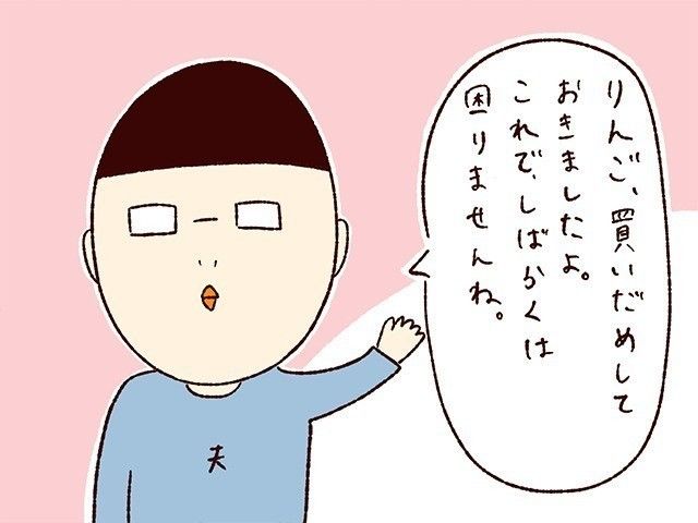 夫がコンビニをはしごして、ありったけのカットりんごを買ってきてくれていたのです。