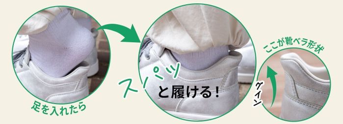 立ったまま履けて脱げにくい!「スパットシューズ」の楽ちんPoint3