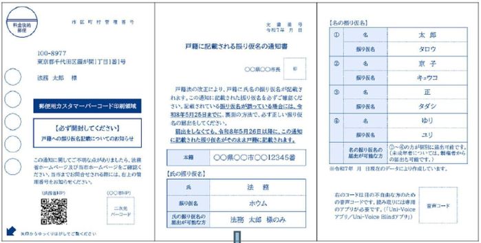 令和7年5月26日より、戸籍に記載予定のフリガナの通知が届く