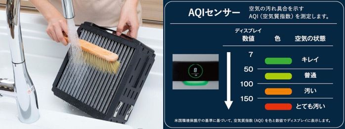 さらに「エアドッグ」は、空気の汚れ具合が目で見てわかるのも、うれしいポイント! お部屋の空気の汚れ具合を示す高感度AQIセンサーを搭載。数値とカラーのディスプレイで、わかりやすく表示します。