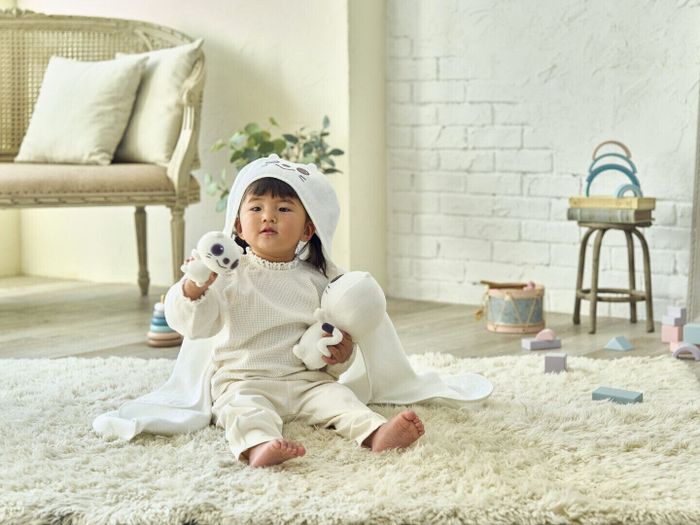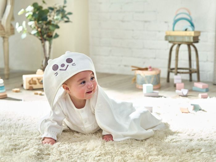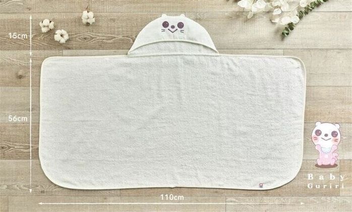 思わずほっこりしてしまう、愛らしいぐりりのお顔がフードに刺しゅうされています。赤ちゃんを包み込むたっぷりサイズなので、湯上がり時のバスタオルとして、お昼寝&お出かけ用のブランケットとして、シーンを問わず使うことができます。