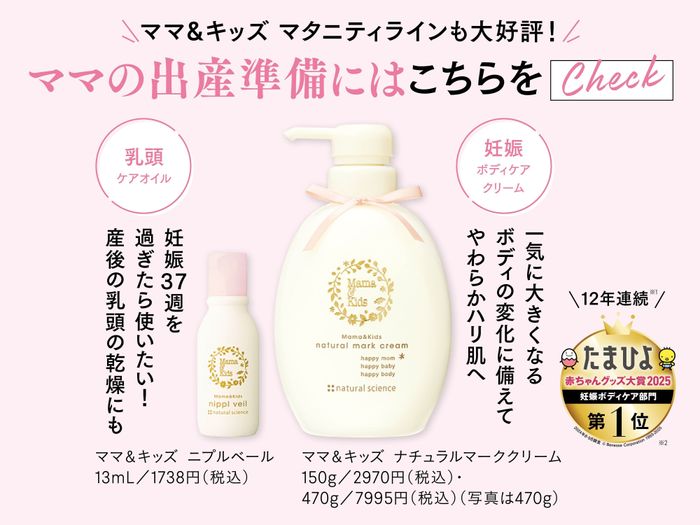 ※2「 たまひよ赤ちゃんグッズ大賞2025」とは、たまひよ読者のママ・パパ2062名による「実際に使ってよかった」と思う商品・サービス に関するアンケート調査の結果をランキング形式で発表する企画です。(2024年8月-9月調査/WEBメディア「たまひよ」掲載)