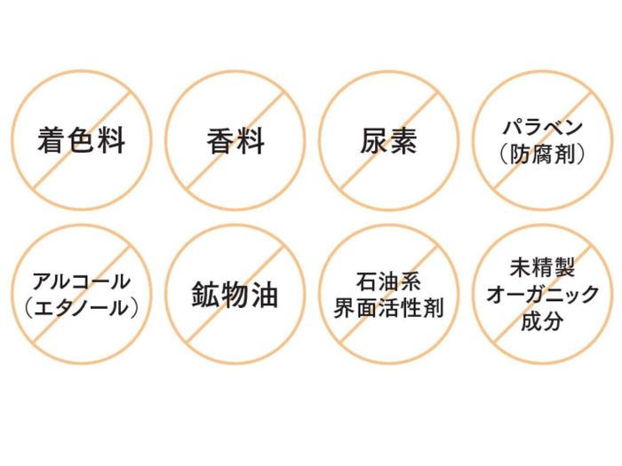 赤ちゃんの肌のために、8つの成分をカット。刺激に敏感な肌にもやさしく使えます。