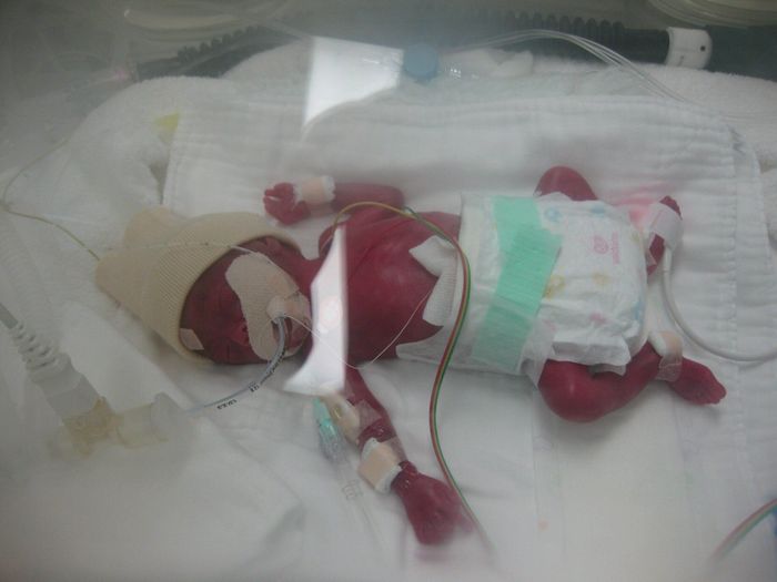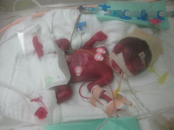 妊娠25週に緊急帝王切開で出産。誕生後も緊急オペが続いた