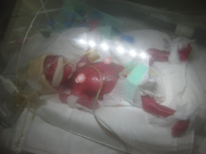 誕生4時間後の二男・碧仁(あおと)くん。651g。生後4日目に緊急オペで命をつないだ
