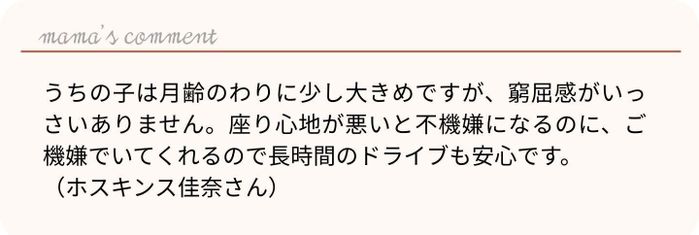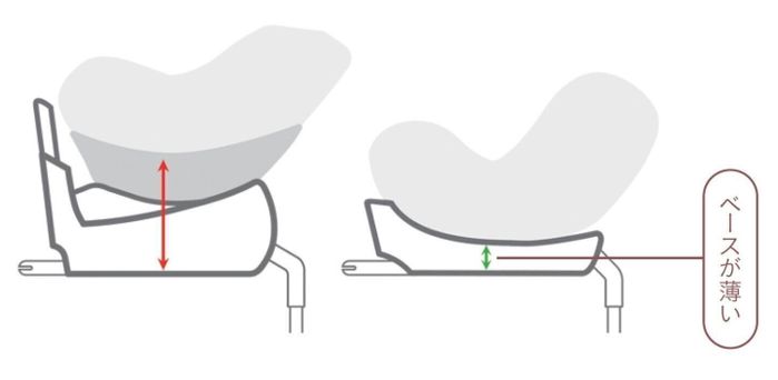 重心と座面が低い設計により、車の振動や急ブレーキ、カーブ時の揺れを最大限に抑え、安全性を高めています。また頭上の空間が広くなり、乗せ降ろしもラク。赤ちゃんが成長しても快適な車内空間を確保します。