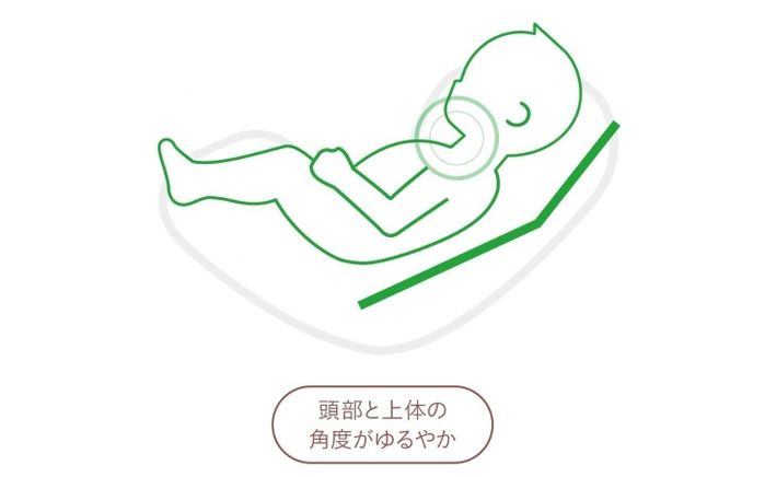 シートの角度は快適な姿勢を保つために重要。とくに新生児期は、ヘッドレスト(頭部)とバックレスト(上体)との角度がゆるやかで、呼吸を妨げにくい設計に。赤ちゃんをラクな姿勢で寝かせられます。