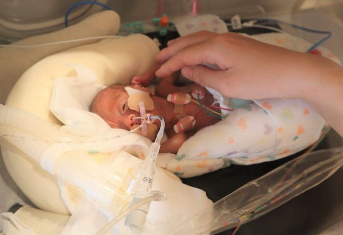「NICUで保育器にいる2人は、口やへその緒に治療のための管が何本もつなげられていました。2人の腕は私の人差し指くらいの太さで、皮膚は真っ赤で、体は小さく細く、頭は軟式野球ボールほどの大きさで、ふにゃふにゃしています。