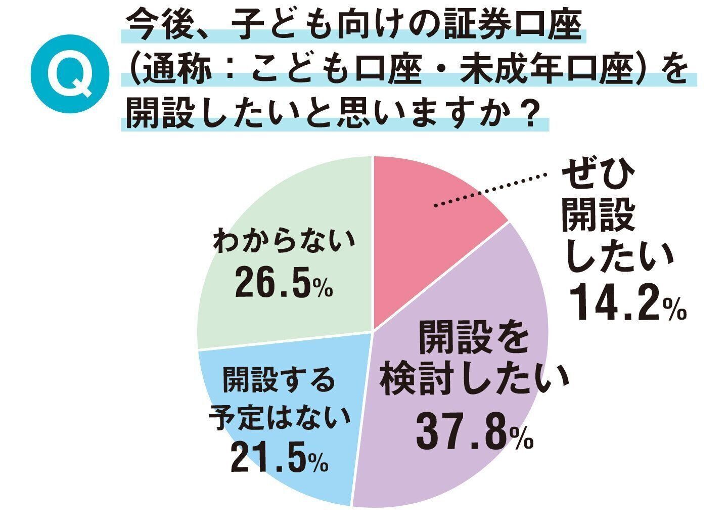 50%以上のママ・パパが、 子ども向けの 証券口座の開設に前向きという結果に。一方、初めて知った、興味はあるが難しそう...という声も多く寄せられました。