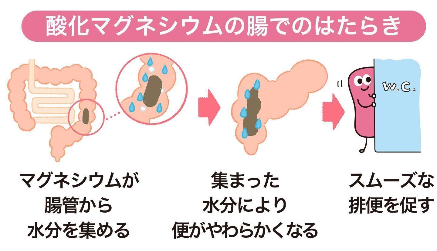 非刺激性の「酸化マグネシウムE便秘薬」は腸を刺激せず、便に直接はたらくから、おなかが痛くなりにくく、クセになりにくい薬。自然に近いお通じを促してくれます。