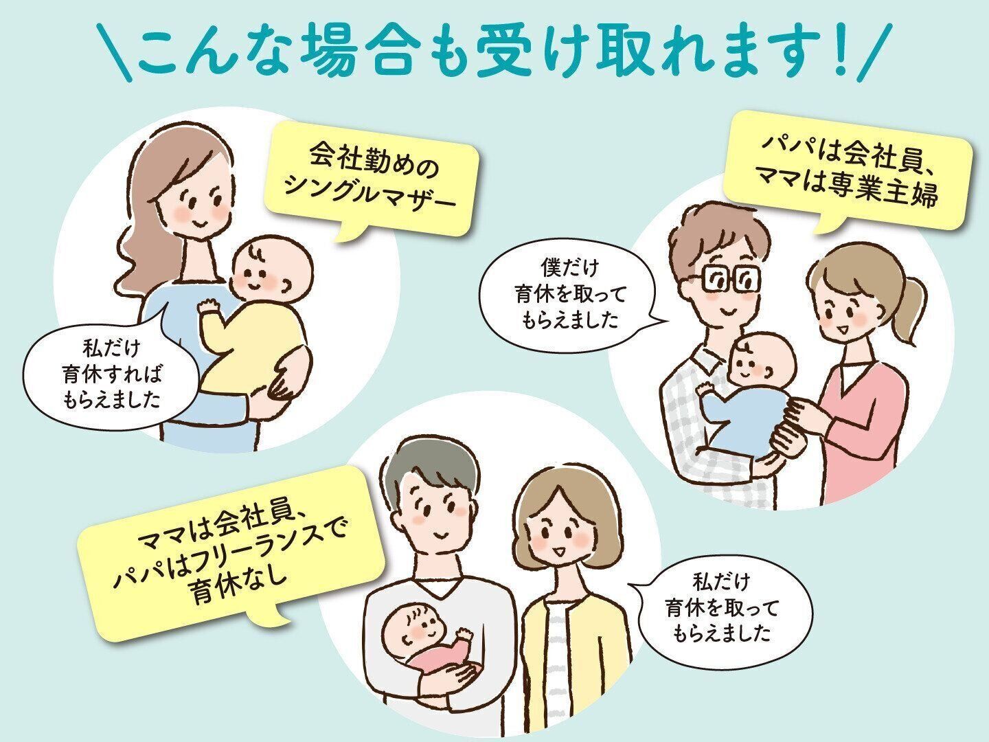 ママは、産後休業後8週間以内に、14日以上取得した育休が対象になります。 ※