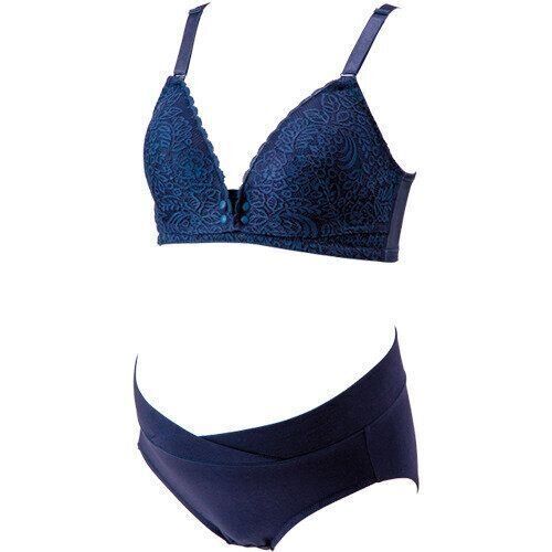 フロントオープンレース授乳ブラ(ネイビー) 2860円(希望小売価格)、産前・産後 らくちんショーツ(ネイビー) 1100円(希望小売価格)