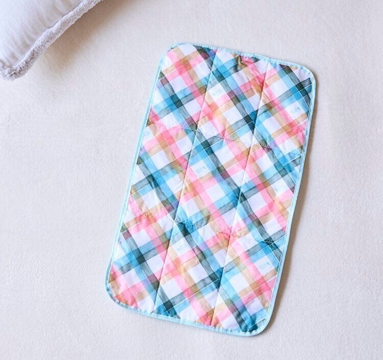 さらに、赤ちゃんにも安心な設計にしており、当たっても痛くないように、おむつ替えマットの四隅はラウンド形に縫製してあります。水彩絵の具で描いたようなナチュラルなタッチのチェック柄なので、ママもパパもおむつ替えが楽しくなりそう!