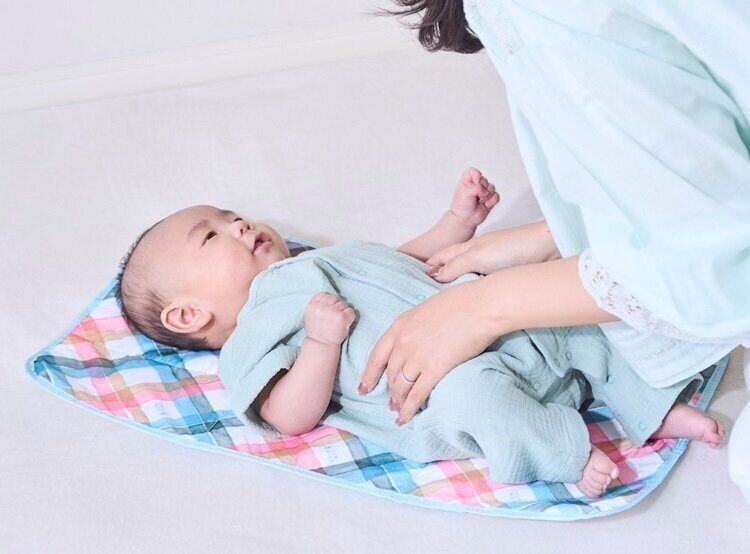赤ちゃんを寝かせるプリント面には、はっ水加工がしてあります。おしっこや汚れがついてもはじいてくれるので、お手入れも簡単。おうちでの毎日のおむつ替えにも、外出先でも大活躍します!