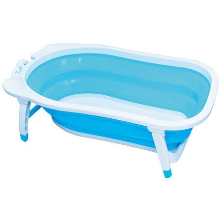 プラスチックタイプは収納スペースをとるのが悩み…という人にも嬉しい、折りたたみ簡単な、コンパクト収納のベビーバス。浴室に吊るして収納することもできて◎。