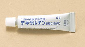 (注意)塗り込まず、患部に厚めに塗って使う。塗った直後は飲食を避けること。比較的安全性が高く、口に入っても問題ない。