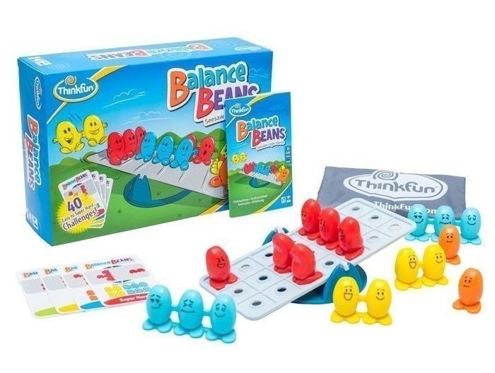 こちらの「BALANCE BEANS」は対象年齢5歳~。出題カードに従って、赤のお豆さんをセットし、シーソーが平行になるには課題のお豆さんをどこに乗せればいいのか?というロジックゲーム。乗せるべき場所を算数計算で導きだすという算数ゲームです。カラフルなお豆さんもかわいくて、子どもの食いつきも良さそうです!