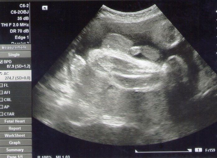 妊娠34週目のエコー写真 胎児が初めて2kg超え