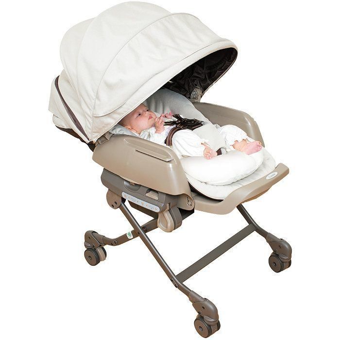 ママの心拍数に近い揺れと、赤ちゃんの全身を覆うホロで、いつの間にかグッスリ。小さいときはお昼寝に、離乳食が始まったらテ ーブル&チェアになり、「あってよかった!」との声が多数。手動と電動から選べます。