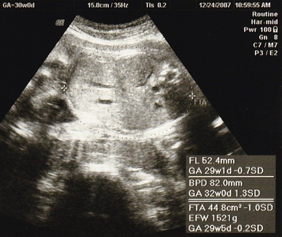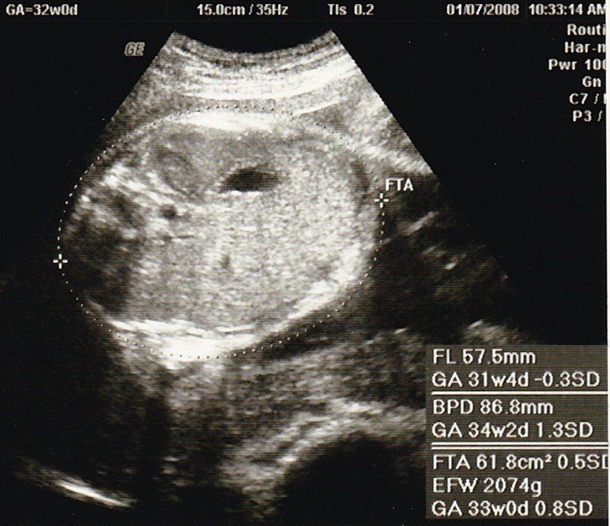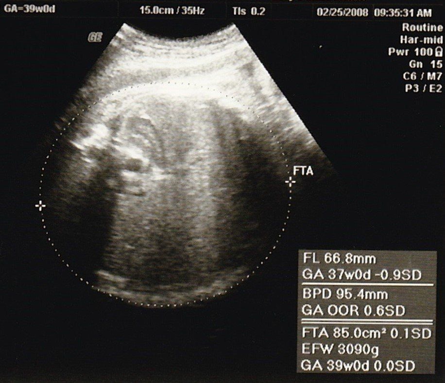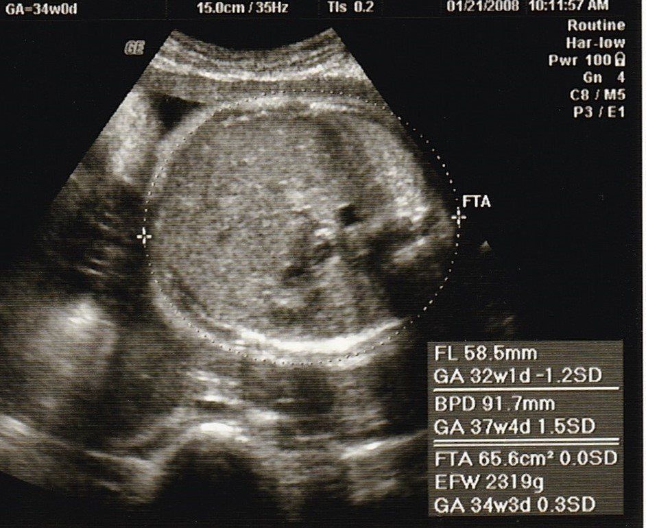 赤ちゃんの大きさは標準の真ん中あたり。胎盤の位置や羊水の量も正常、母子ともに問題はありませんでした。