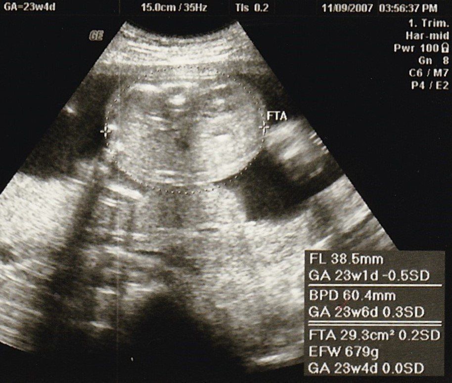 推定体重679g。大きくなったためエコー画像に収まらなくなり、胎動もよく感じるようになりました。運動や、母親学級に参加したことで、初めてのママ友ができ、マタニティーライフを満喫。結婚して引っ越してきた土地で、近所に友人もおらず、平日に近所を歩くこともなかったので、毎日がとても新鮮でした。妊娠生活や、地域の情報なども交換でき、有意義な時間がすごせました。ただ、その目的で、お茶やランチをしていたせいか体重はどんどん増えるばかり。