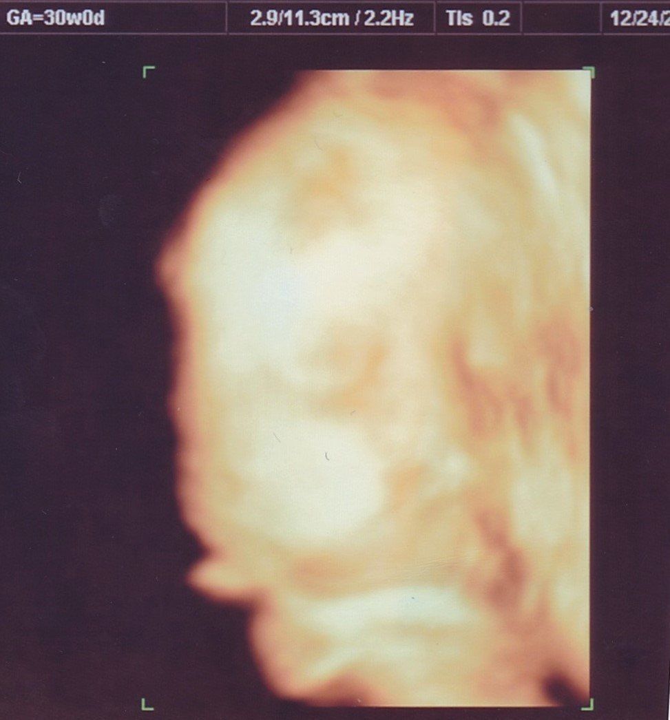 ムチムチの赤ちゃんの顔がアップになった4D写真。出産まで3カ月をきり、改めて「出産準備をしなければ」と、焦り始めました。