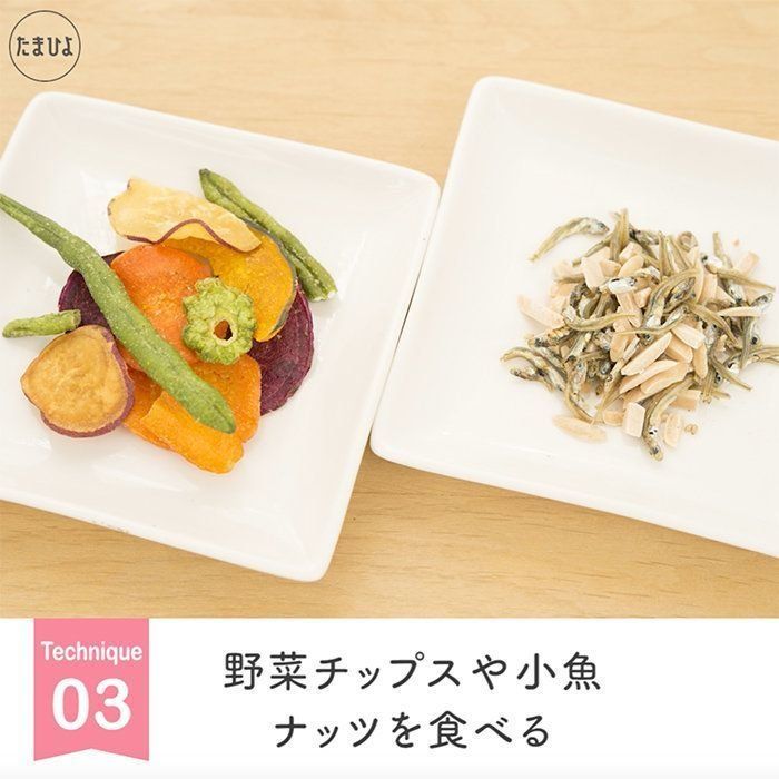 【挽回テク・03】野菜チップスや小魚、ナッツを食べる