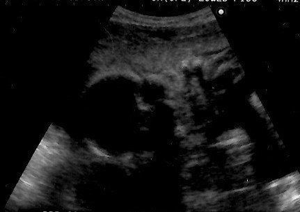 妊娠40週目のエコー写真 羊水の状態が悪くなり、計画出産が決定