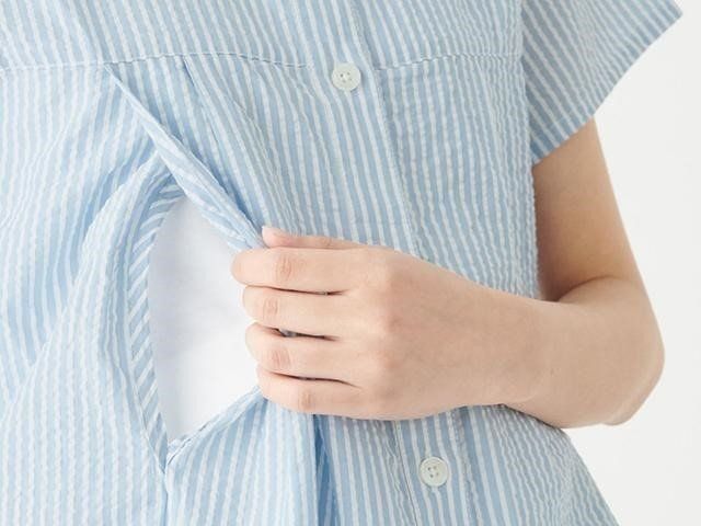 このように胸の横から授乳ができます。見た目はふつうのパジャマなので、授乳が終わってからも長く使えそうです。