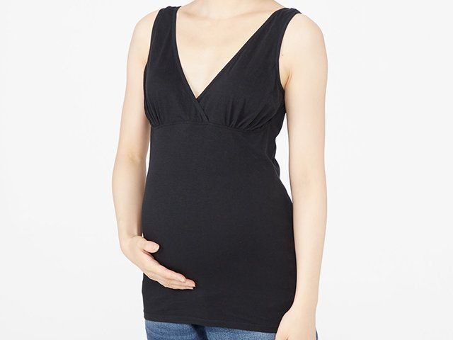 妊娠中は体を冷やさないようにしたいけれど、何枚も重ね着するのはひと苦労ですよね。こちらは胸元のクロス部分を開いて授乳できるカップ付きのタンクトップ。吸放湿性があり、さらりとした着心地で、一枚だけでおなかもすっぽりと包んでくれます。