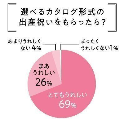 そこで、最近注目なのは、「カタログギフト形式」の出産祝い。ママへのアンケート調査でも、約95%(※)のママが「選べるカタログ形式の出産祝いをもらったらうれしい」と回答しました。