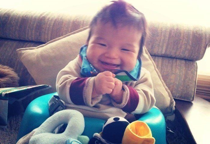 うまれた後は、しばらく同じ歌を聴かせていると、ふと頭を上げて必死に見ようとしていて、歌に反応しているようでした。また、歌をかけるとすぐに「聞いたことがあるなあ」というような不思議そうな表情で、私の顔を見ていました。特に、「What’s your name?」の歌を歌ってあげると、嬉しそうに笑っていました。