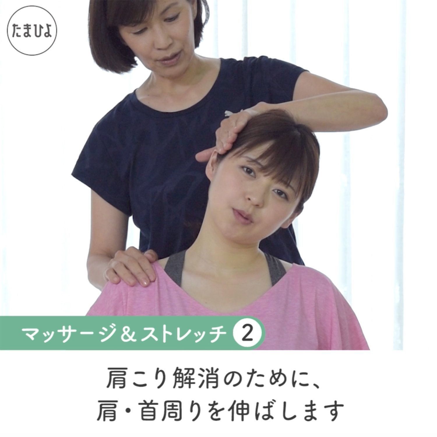 【2】 次に、肩、首まわりを伸ばします