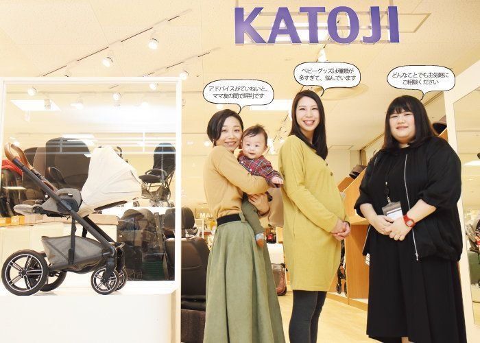 (写真左から)今泉美菜さん&葵翔(あおと)くん(7カ月)、宮本朋美さん(妊娠8カ月)、カトージ モザイクモール横浜港北店 店舗アドバイザー 店長 野口聡美さん
