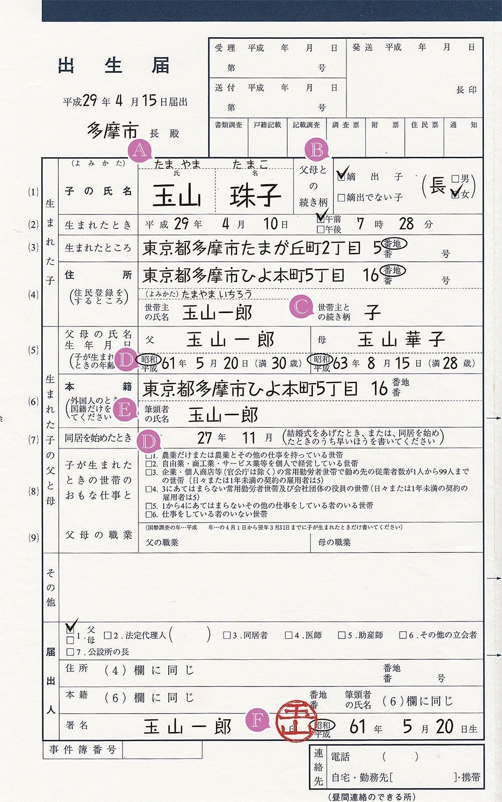 出生届はどのように記入するか、確認してみましょう。記入時のポイントを6つご紹介します。
